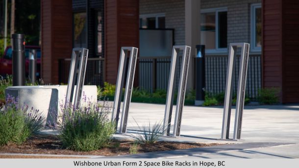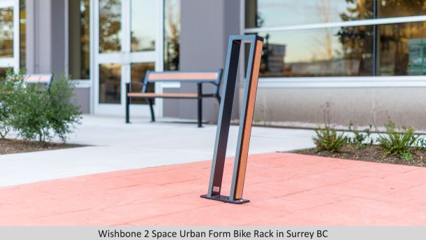 This design takes its cues from the Urban bench in the same series. The angle matches the same angle as the backrest on the bench. The open design provides a range of ways to lock and secure bicycles. Durable aluminum frame and powder-coated finish prevent scratching and corrosion over time. Can be installed in virtually any configuration depending on the application. The recycled plastic lumber acts as a buffer between the bicycle frame and the bike rack preventing wear and tear on both the bike and the bike rack. Perfect in environments where the use of bike racks is seasonal. Simply add and take away as needed.