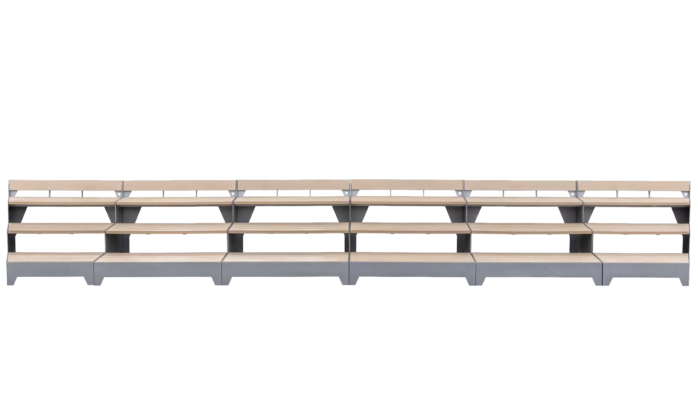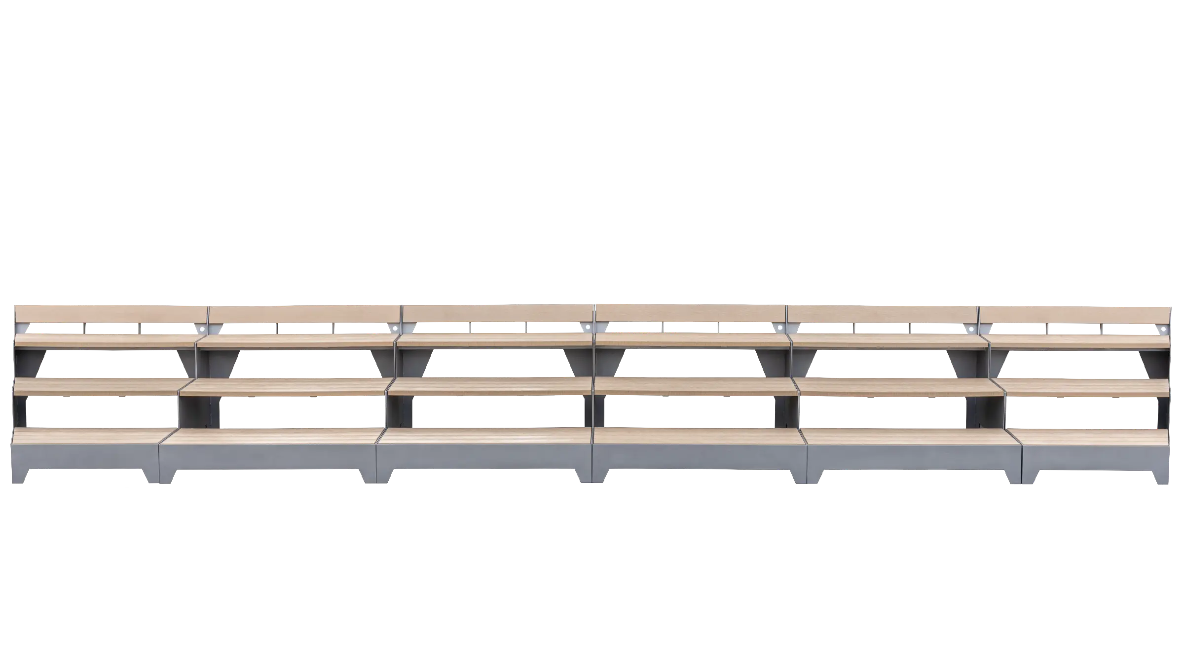 This three-tier rectangular bench comfortably seats up to six adults, providing a clear vantage point for watching a game or waiting for your turn. Its stepped design offers improved sightlines and a cleaner, more organized seating area, making it an ideal addition to pickleball courts, tennis venues, or other small-scale outdoor gathering spaces.