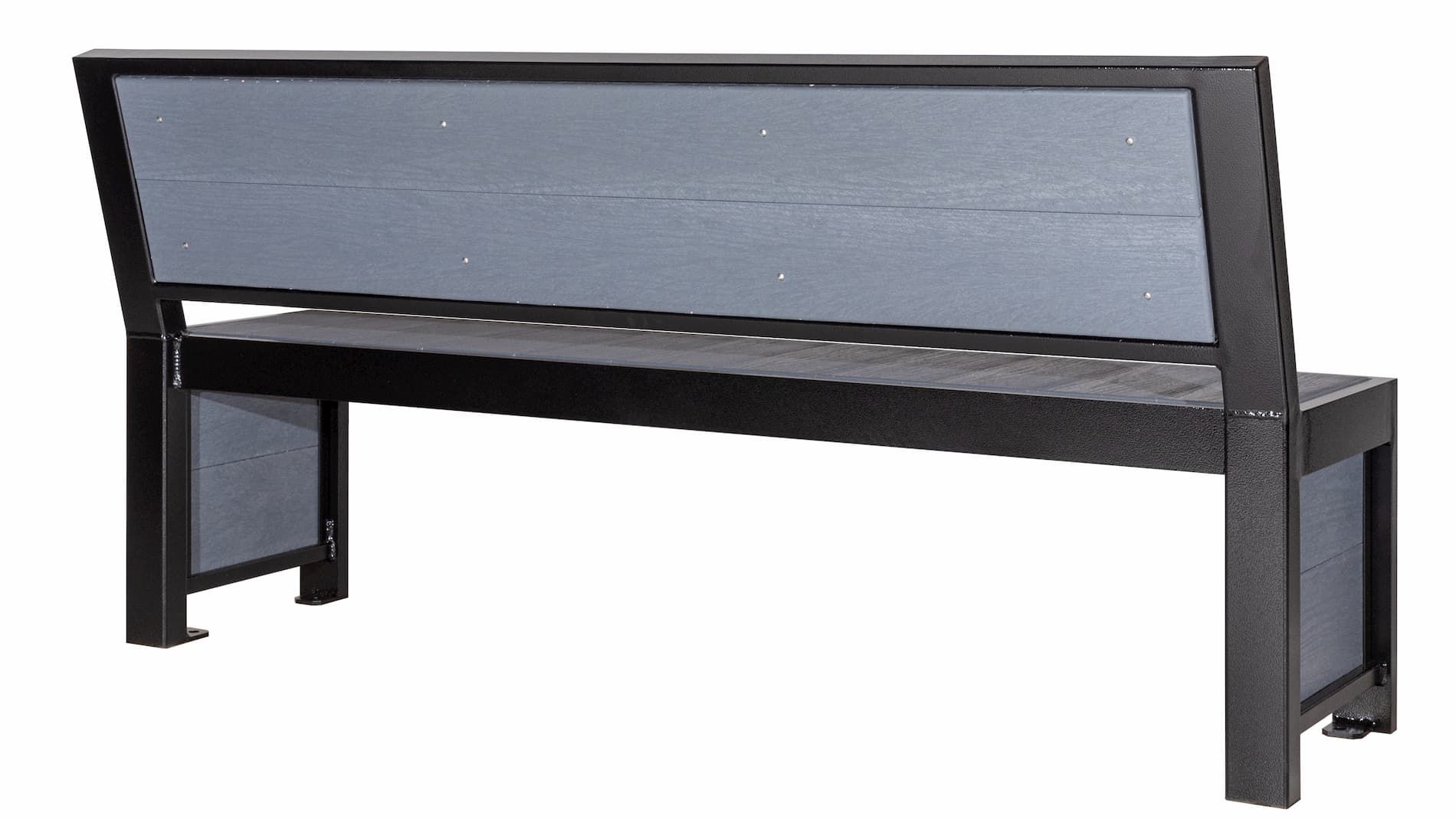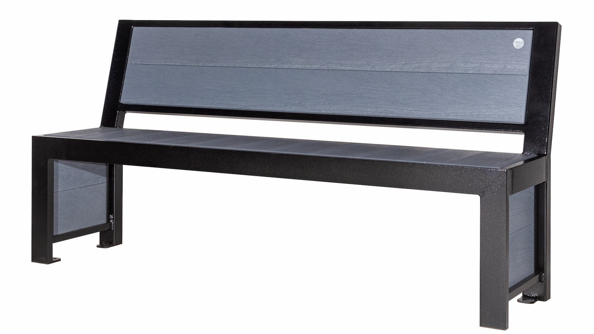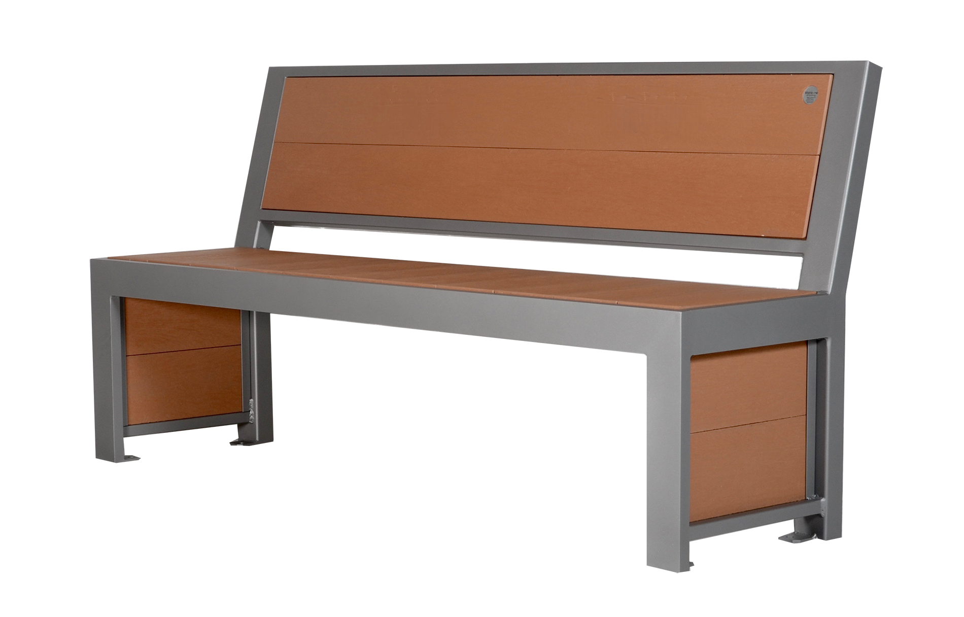 The concept of this series was to design a group of site furnishings that reflected a modern, angular, and minimalist aesthetic, popular in contemporary architecture today. The Urban Form Park Bench’s distinctive three-quarter cantilevered backrest; suggestive of a French-style chaise lounge, provides users with a 360- degree viewing opportunity. In keeping with the clean look this bench is meticulously finished with framed-in lumber and no exposed hardware. The slightly raised slats on the seat and back make for a very comfortable repose. This model is a delight to look at from any angle without compromising the benefits of recycled plastic and aluminum construction. Keeping with our environmental stewardship efforts the bench design minimizes waste and maximizes recycled content.