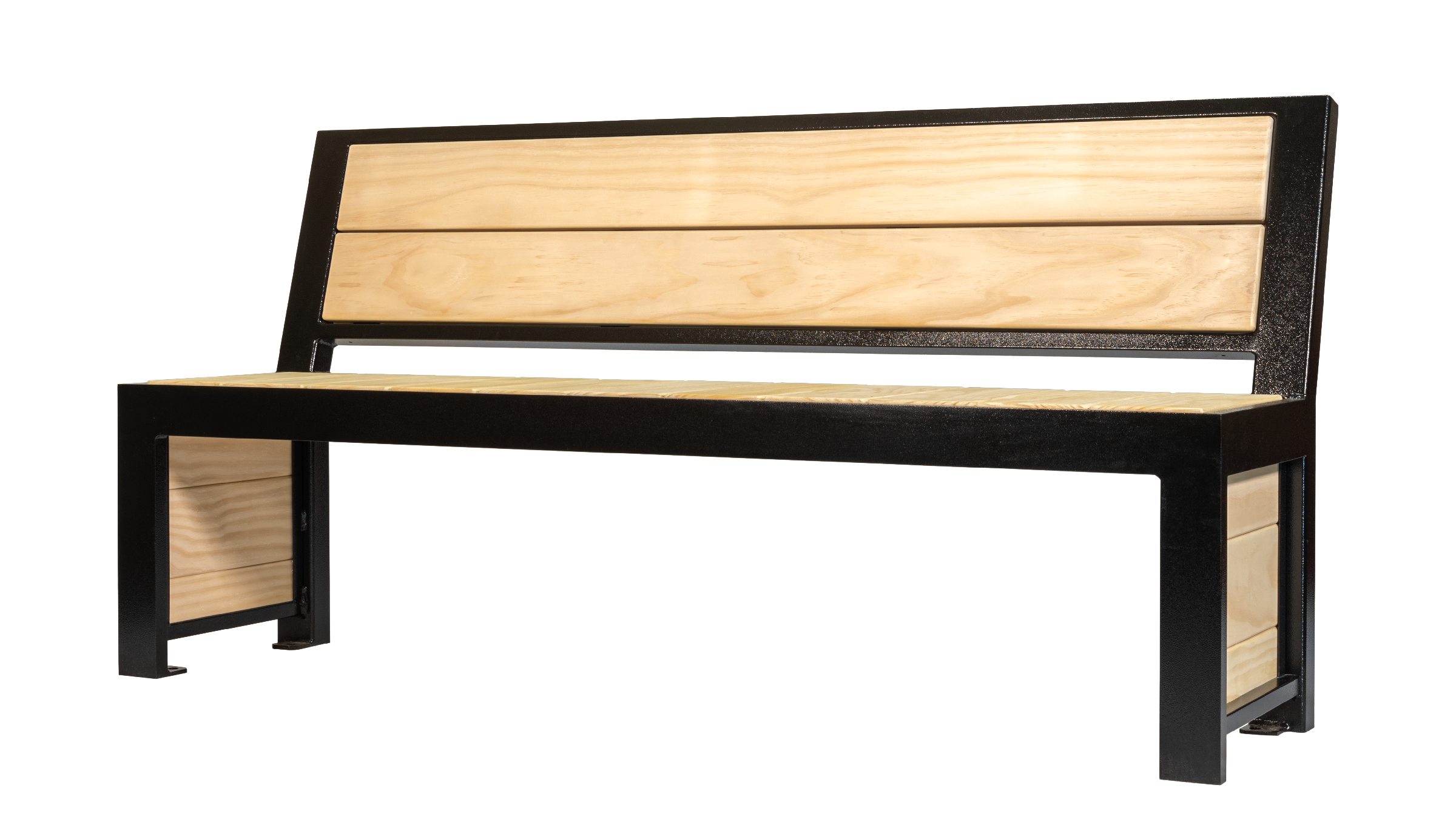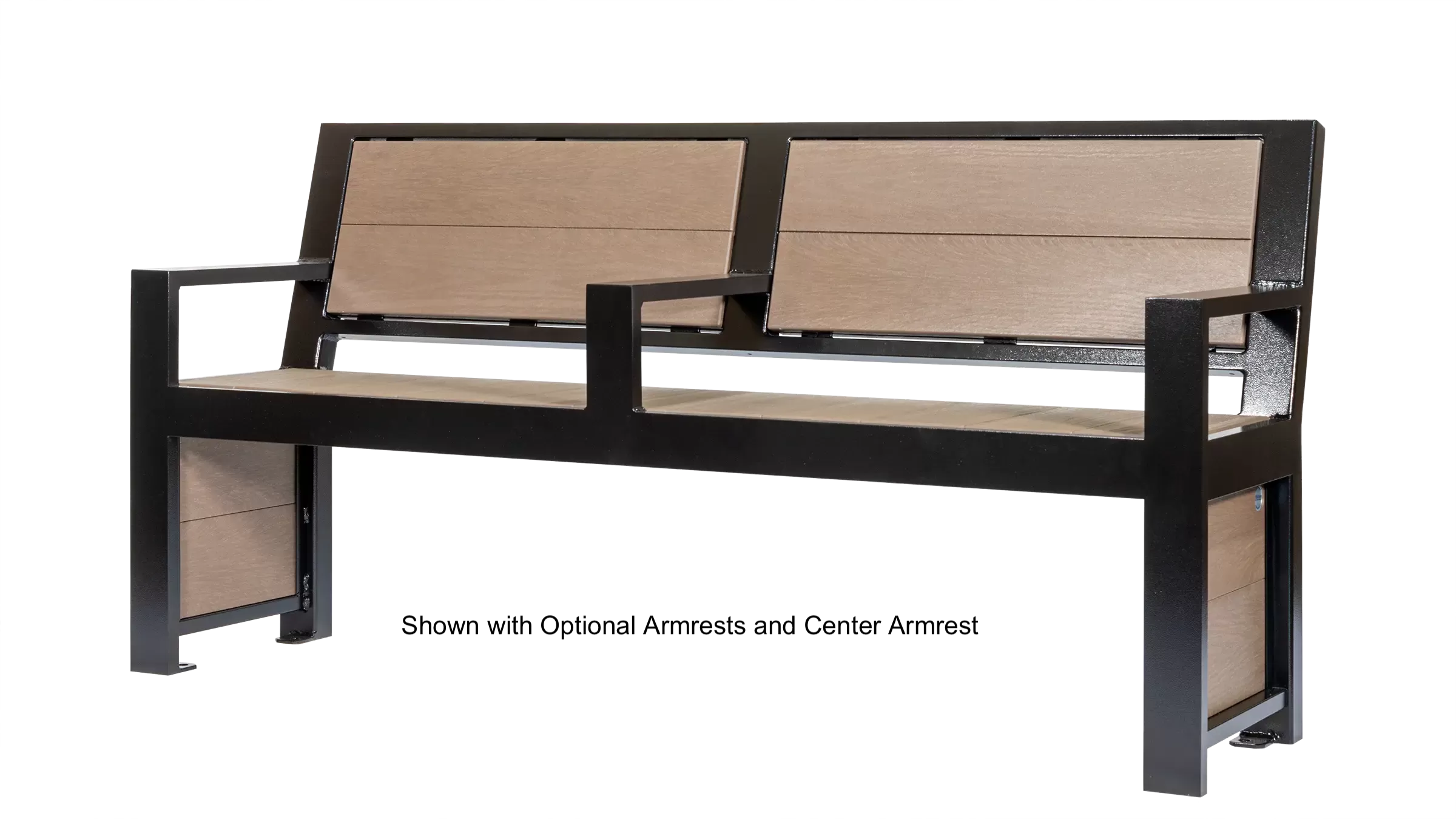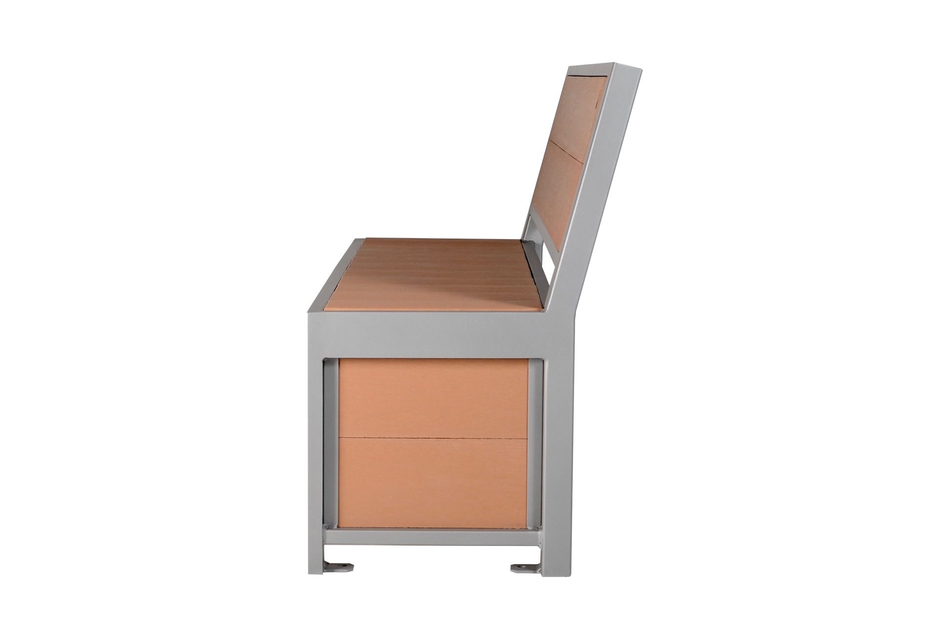 The concept of this series was to design a group of site furnishings that reflected a modern, angular, and minimalist aesthetic, popular in contemporary architecture today. The Urban Form Park Bench’s distinctive three-quarter cantilevered backrest; suggestive of a French-style chaise lounge, provides users with a 360- degree viewing opportunity. In keeping with the clean look this bench is meticulously finished with framed-in lumber and no exposed hardware. The slightly raised slats on the seat and back make for a very comfortable repose. This model is a delight to look at from any angle without compromising the benefits of recycled plastic and aluminum construction. Keeping with our environmental stewardship efforts the bench design minimizes waste and maximizes recycled content.