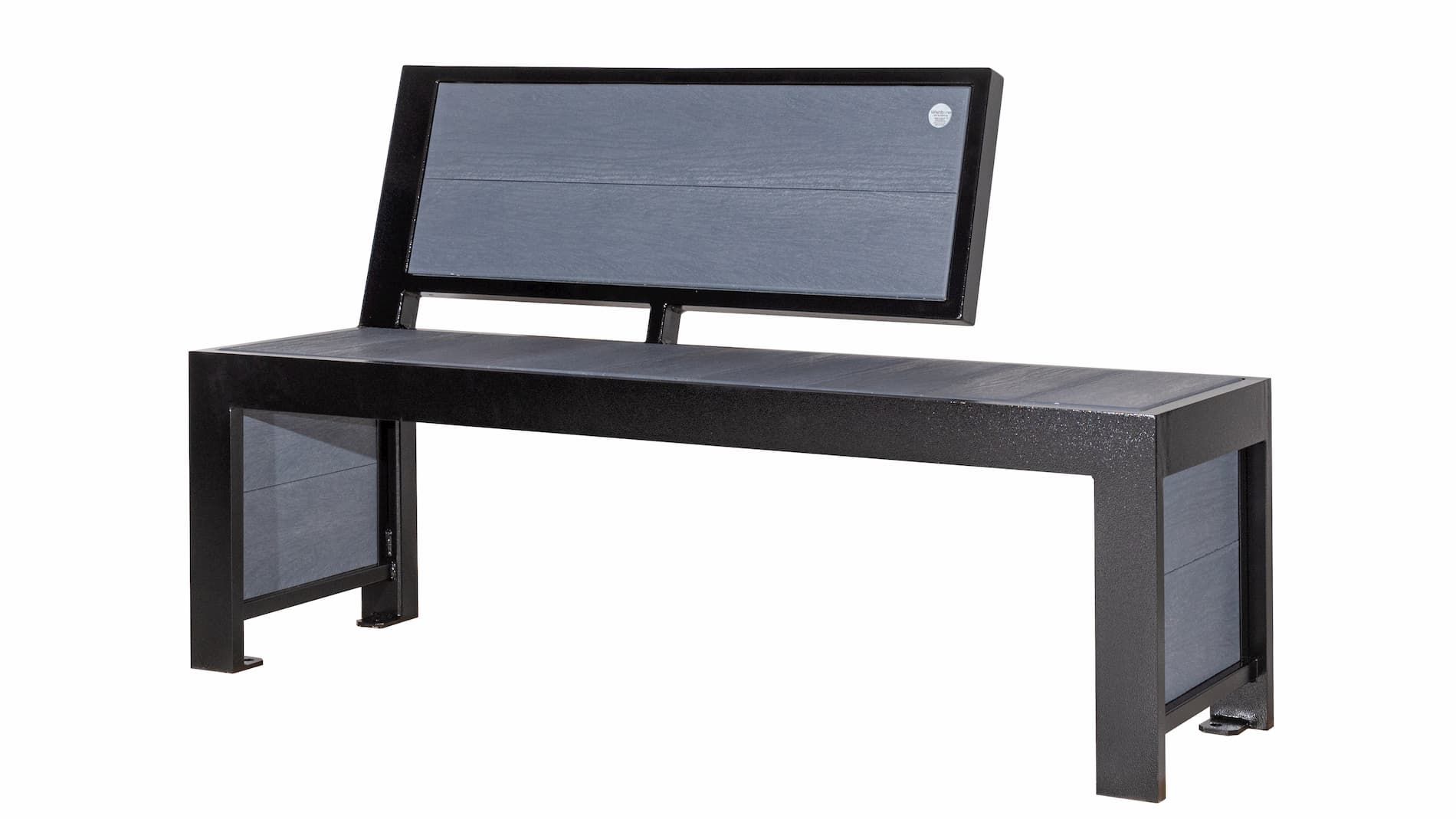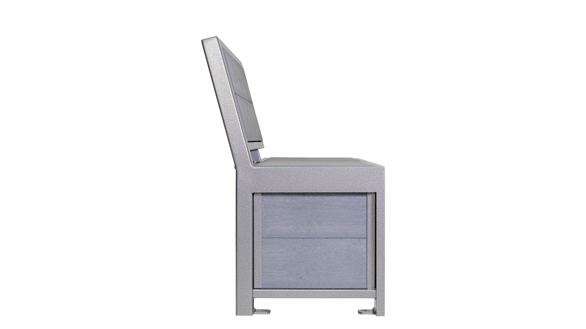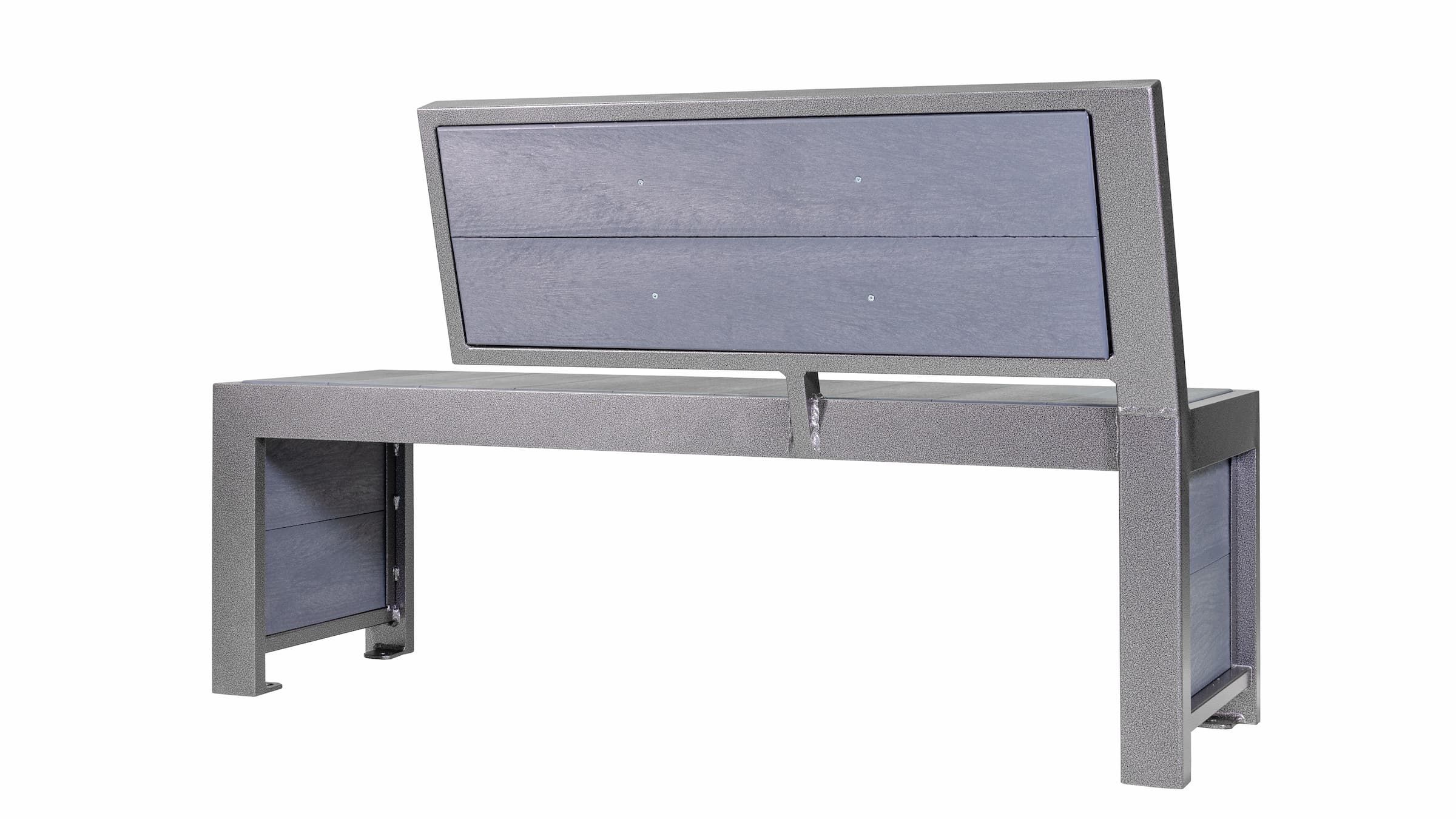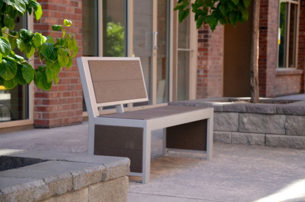 The concept of this series was to design a group of site furnishings that reflected a modern, angular, and minimalist aesthetic, popular in contemporary architecture today. The Urban Form Park Bench’s distinctive three-quarter cantilevered backrest; suggestive of a French-style chaise lounge, provides users with a 360- degree viewing opportunity. In keeping with the clean look this bench is meticulously finished with framed-in lumber and no exposed hardware. The slightly raised slats on the seat and back make for a very comfortable repose. This model is a delight to look at from any angle without compromising the benefits of recycled plastic and aluminum construction. Keeping with our environmental stewardship efforts the bench design minimizes waste and maximizes recycled content.