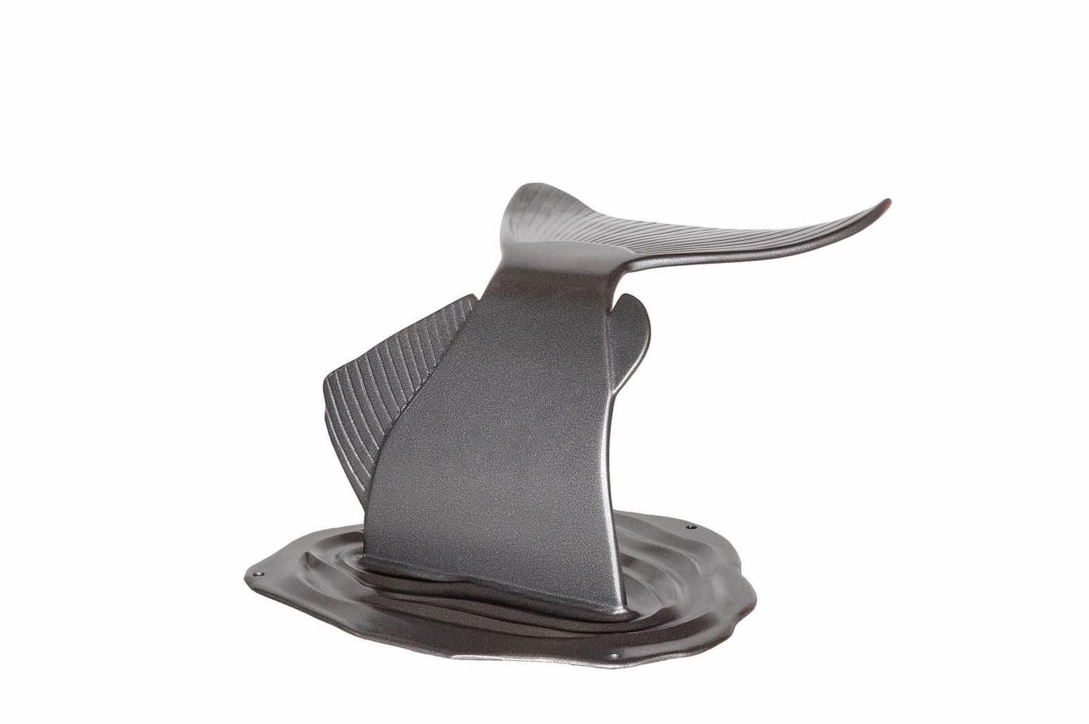 The whimsical tail will make a splash at waterparks, fishing holes, indoor and outdoor pools . It will also make a positive impact on our environment as three recycled aluminum vehicle rims went into the aluminum casting. Carp-e-diem!