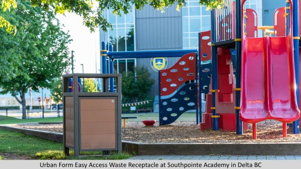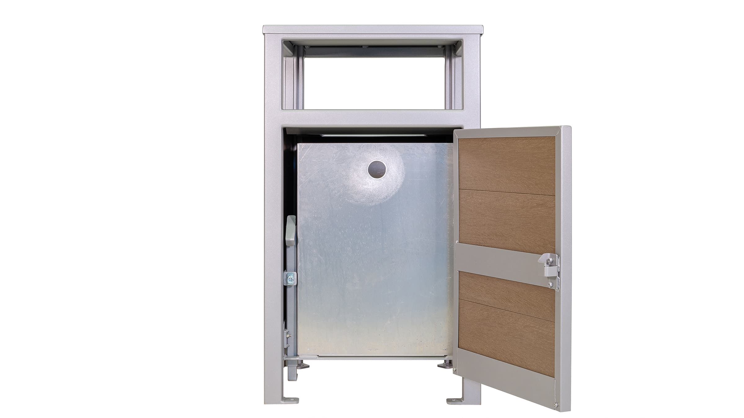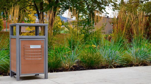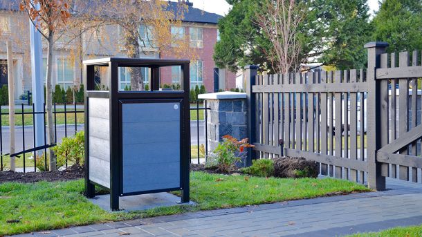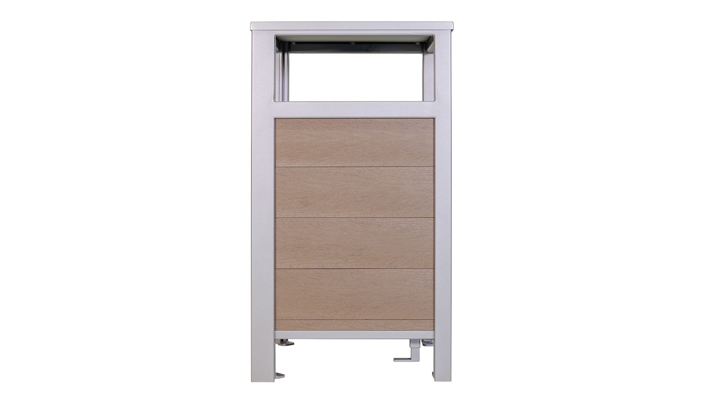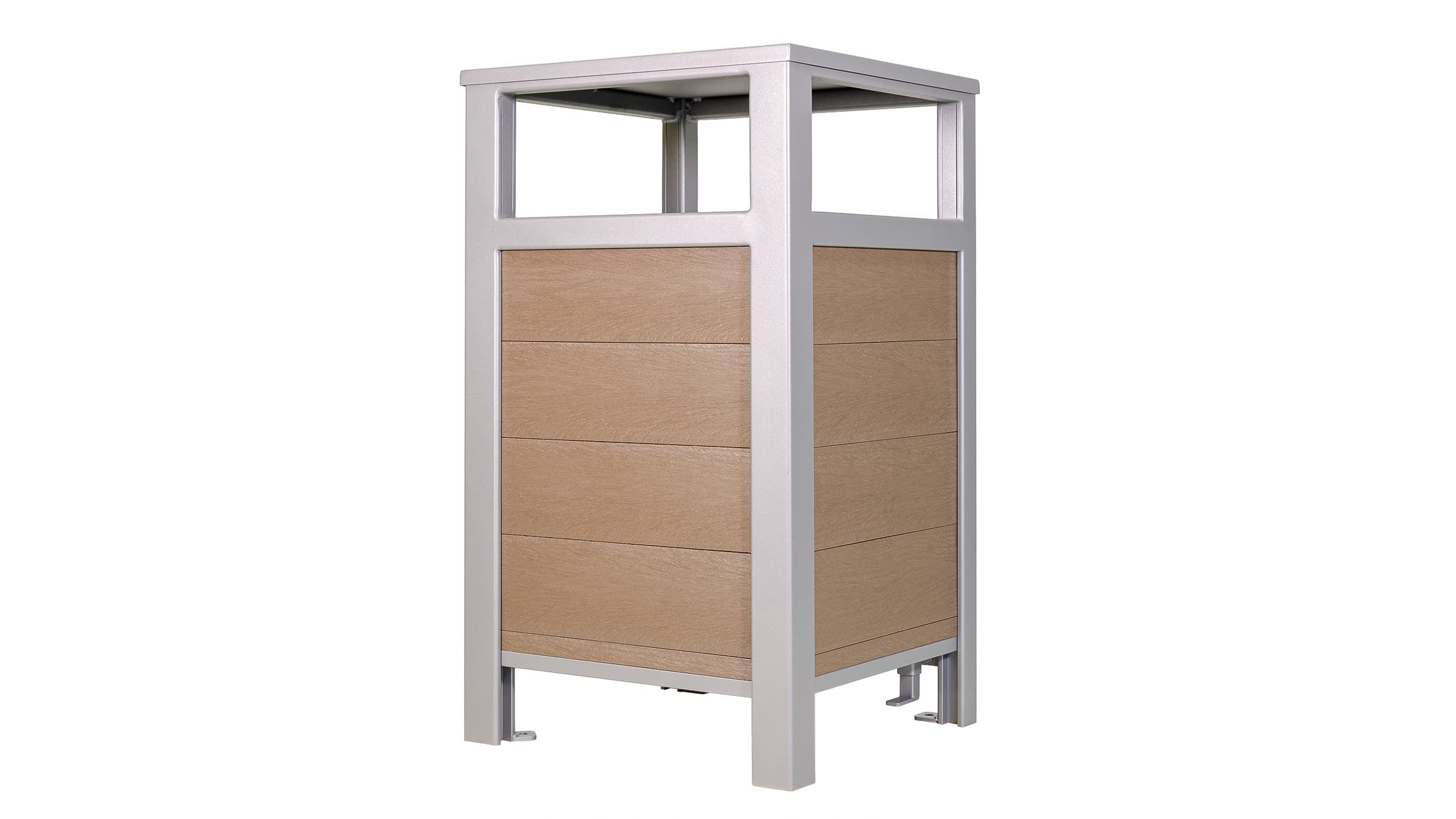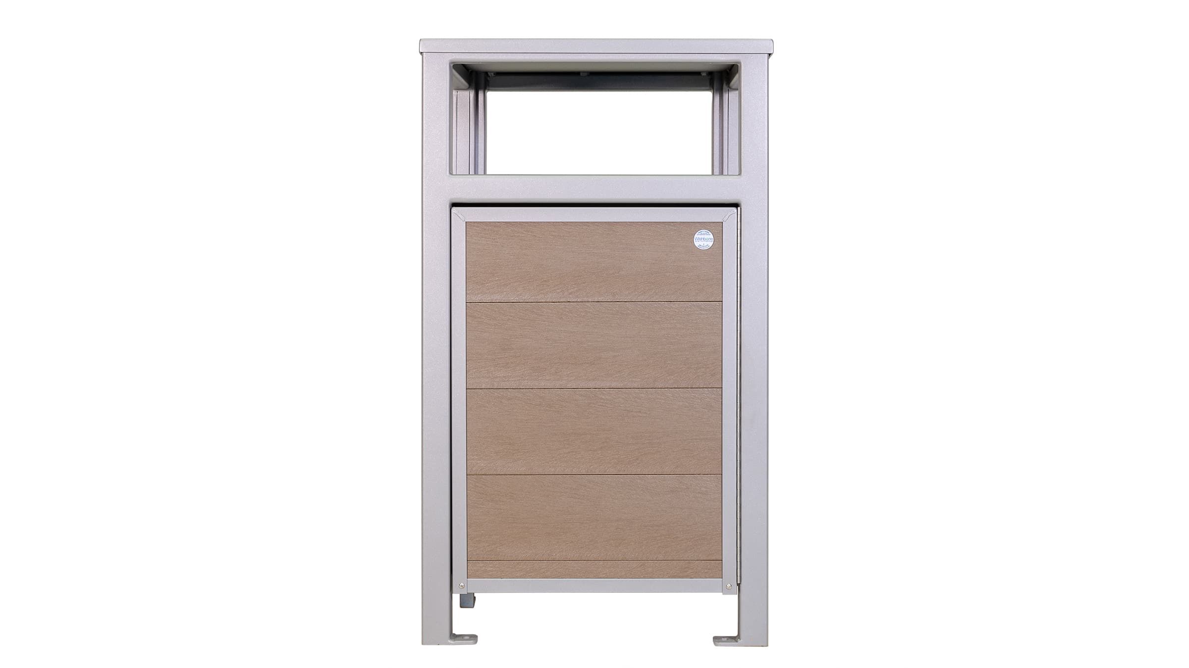 Class-leading design combined with affordability and functionality make the Urban Form Waste Receptacle a must-have to enhance any outdoor setting. The 4 sided 8” openings allow easy access and the funnel design ensures all waste is directed towards the liner. Like the rest of the Urban Form Series, the horizontal lumber orientation and minimalist look match well with modern architectural elements. Innovative features such as the keyless hidden door latch system make emptying and cleaning a breeze for any maintenance worker. Minimal fasteners and clever design mean that the recycled plastic boards can be easily replaced if damaged. The solid top design helps deter locals from emptying their household waste and keeps out water and critters.