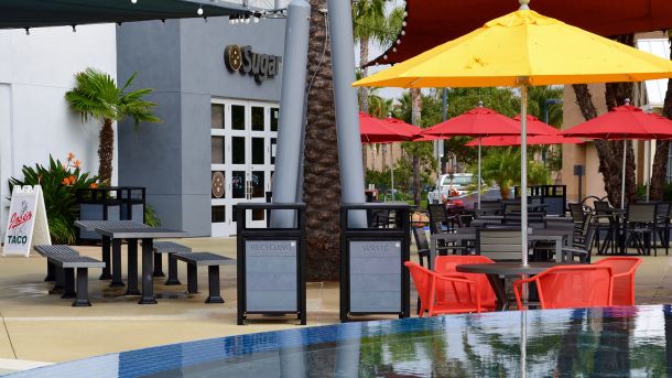 Wishbone recycled plastic boards are non-toxic, ultra-durable and low maintenance. They are easy to clean and can be renewed from UV damage. The recycled material is simply excellent for the demands of outdoor commercial furniture while also helping to divert waste plastic from landfills.